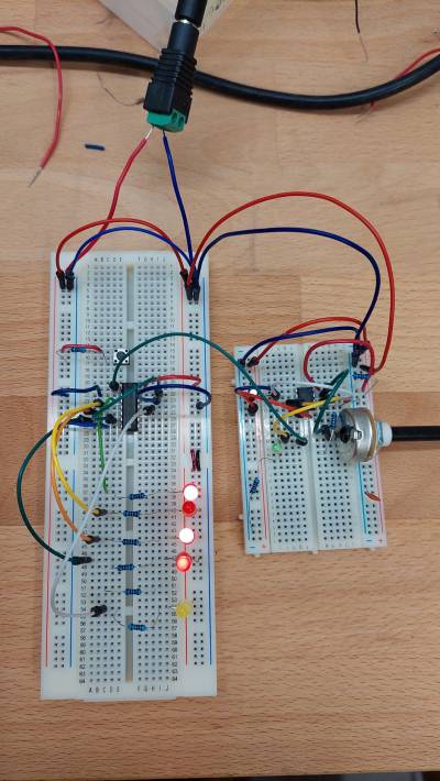 Nutze den Taktgeber aus dem Kapitel "555 Timer" oder einen Funktionsgenerator, um die Schaltung statt des Tasters mit einem periodischen Clock-Signal zu speisen.