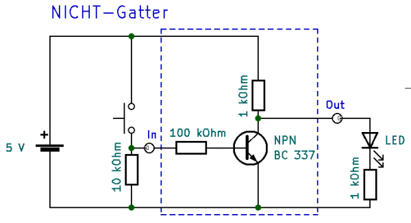 Am NICHT-Gatter sehen wir grundlegende Eigenschaften aller nachfolgenden Schaltkreise: